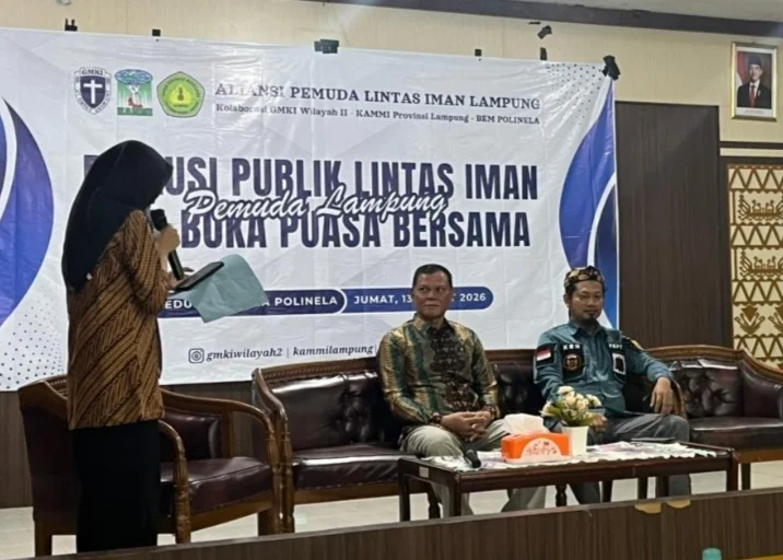 RRI.CO.ID, Bandarlampung – Kantor Wilayah Kementerian Hukum Lampung memberikan materi terkait penyelesaian pelanggaran yang berkaitan dengan konflik keberagaman dan kasus intoleransi. Materi tersebut disampaikan dalam Diskusi Publik Lintas Iman Pemuda Lampung di Gedung Sakura Politeknik Negeri Lampung.