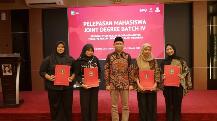 Dalam proses pelaksanaan joint degree program ini telah dilakukan serangkaian kegiatan dari mulai pendaftaran, seleksi, pembekalan dan hingga pelepasan yang dilaksanakan mulai Desember 2025 sampai Februari 2026. Pada hari Jum’at, 25 Februari 2026, Program Magister Hukum FH UII melakukan pelepasan Joint Degree Program di Ruang Mini Auditorium Fakultas Hukum UII untuk mengantarkan 4 mahasiswa Program Magister Hukum yang sudah lolos seleksi dan pembekalan untuk program tersebut, yaitu Iftin Yuninda Hart, Helen Palisca, Angie Natasya Hirawan Putri, dan Meiske Iriyani.